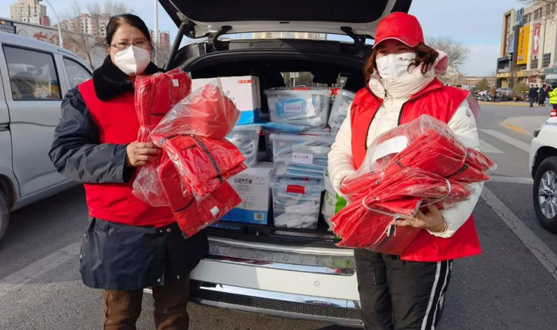在王娟王總親自帶領下,到靜海區東城各核酸檢測點捐贈口罩、手套、消毒紙巾等物資,為靜海義工隊、靜海區與愛同行志愿者服務中心的志愿者們捐贈口罩、手套、等基本抗疫物資,為正在奮戰的醫護工作者鼓勁加油,為天津加油!為靜海加油!