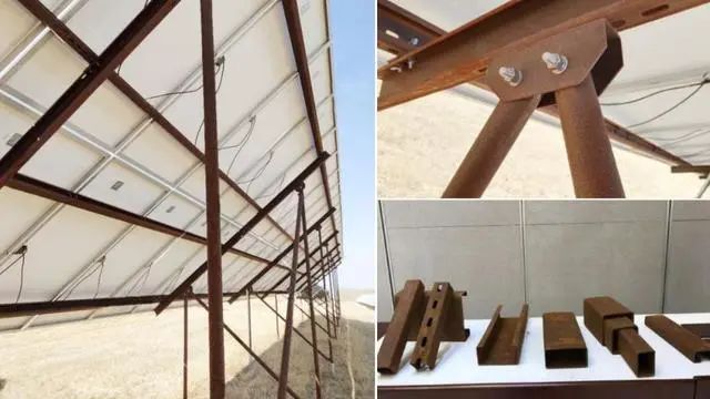 ????????耐候鋼光伏支架利用耐候鋼耐腐蝕性,在降低光伏支架成本的同時還能減少鍍鋅污染,縮短生產周期,使工程工期得到了有力的保障,解決了傳統支架的短板。